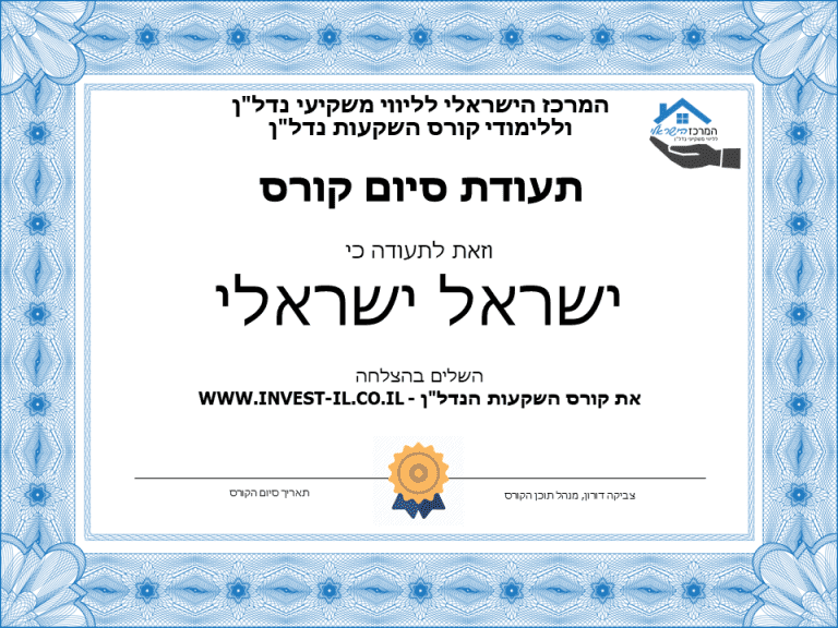 לאחר השלמת הקורס תוענק תעודת סיום מטעם invest-il
