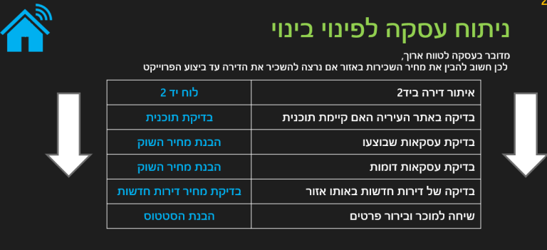 ללמוד על פינוי בינוי כיום יותר ויותר משקיעי נדל"ן רוצים ללמוד על פינוי בינוי, מכיוון ששם נמצאת עליית הערך המשמעותית בהשקעות נדל"ן בישראל. מעבר